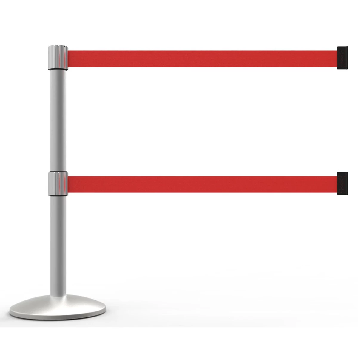 QLine belts are 2.5″ wide – 25% larger than competitor products for greater visibility! Interchangeable belts allow for repurposing barriers without the need for total system replacement. Built for durability, the anodized finish will not peel or flake and allows for both indoor and outdoor use. Safety enhancements include slow – retraction belt braking system, heavy – duty cast iron base with metal cover, recessed post assembly for greater stability, and rubberized feet to protect floors from scuffs and marks
