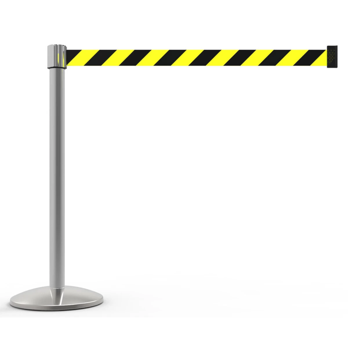 QLine belts are 2.5″ wide – 25% larger than competitor products for greater visibility! Interchangeable belts allow for repurposing barriers without the need for total system replacement. Built for durability, the anodized finish will not peel or flake and allows for both indoor and outdoor use. Safety enhancements include slow – retraction belt braking system, heavy – duty cast iron base with metal cover, recessed post assembly for greater stability, and rubberized feet to protect floors from scuffs and marks
