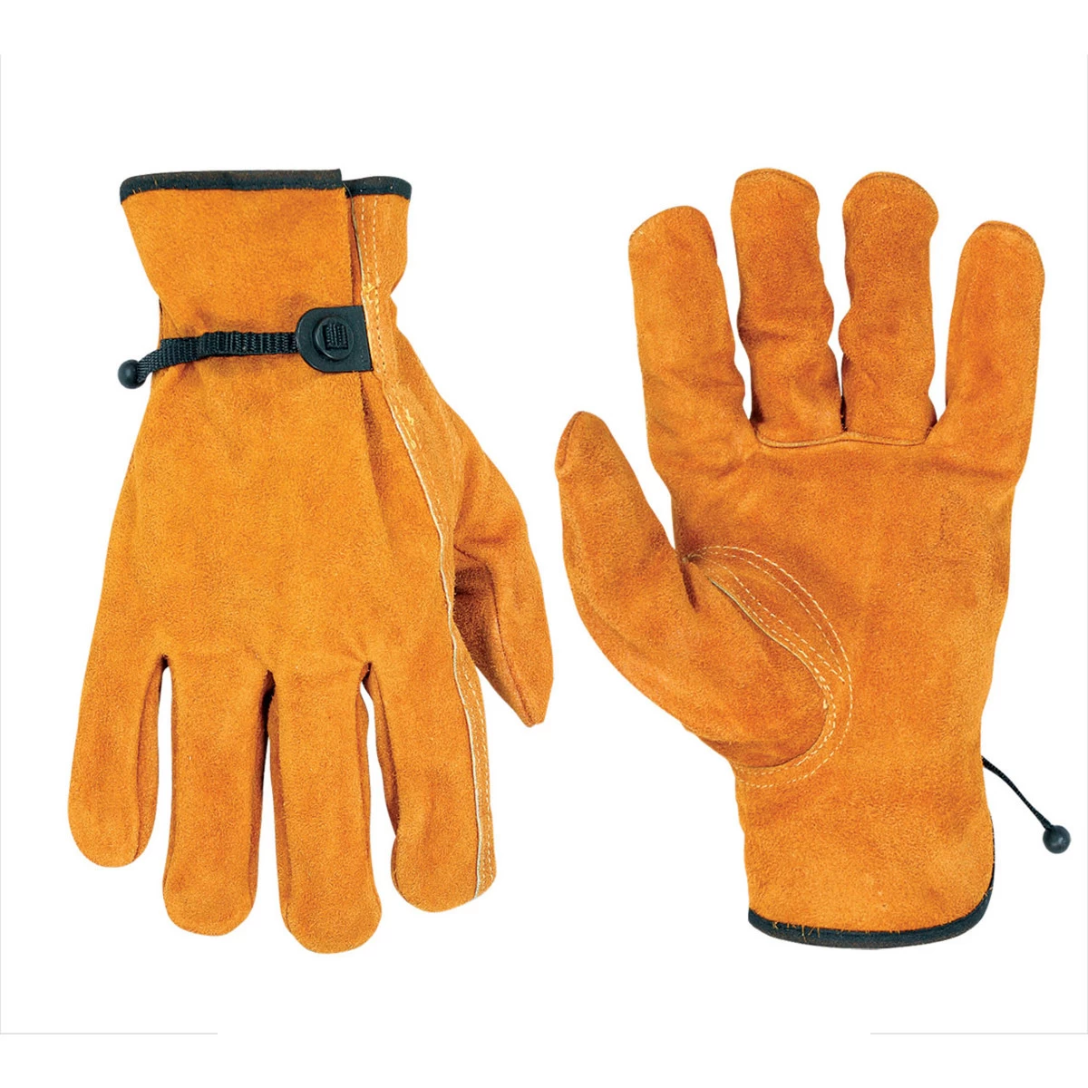 - Split cowhide leather driver work gloves.