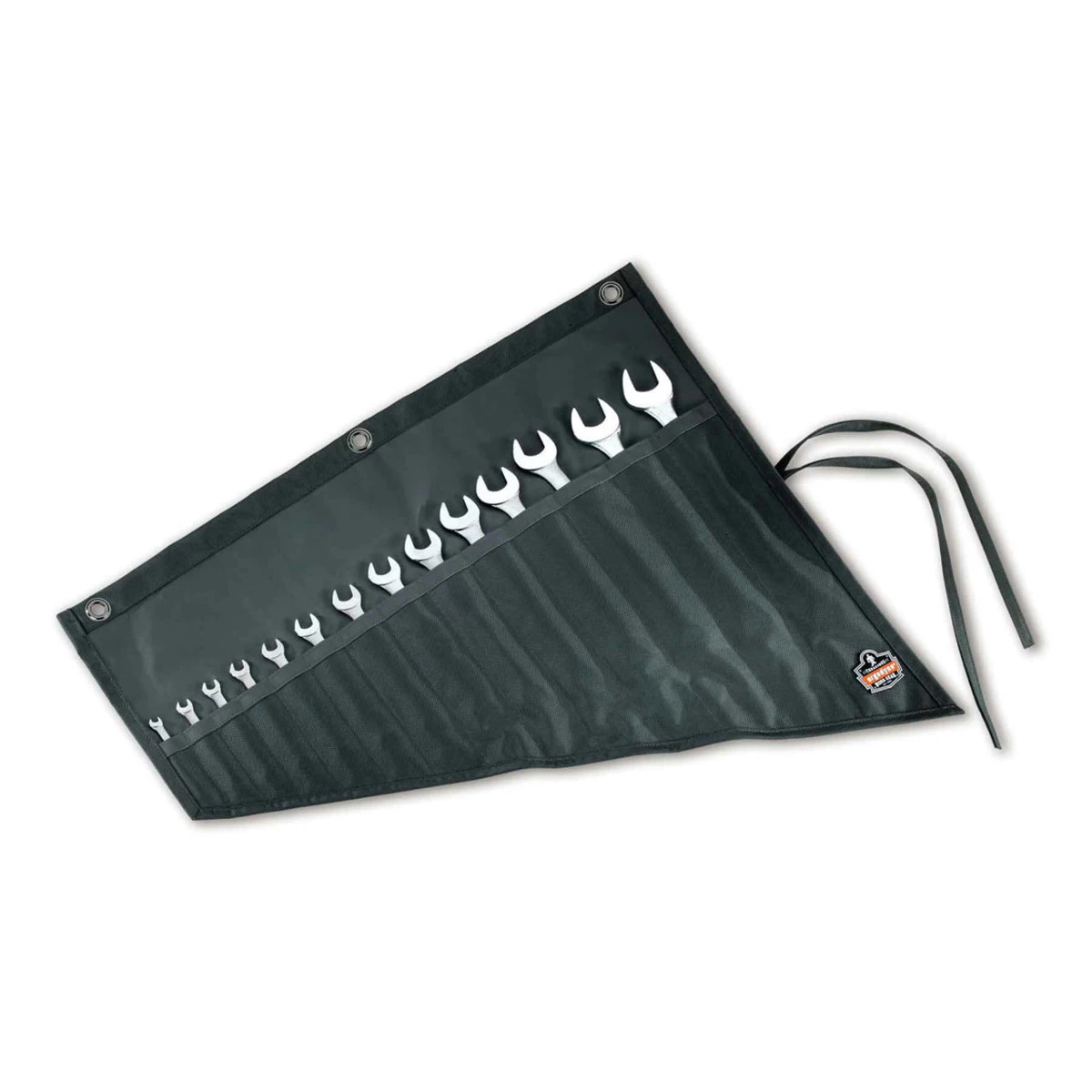 Ergodyne Arsenal Wrench Roll-Up (#5872) stores wrenches in an organized roll. The most common applications for this wrench roll are carpentry, trades, construction, contractors, maintenance, mechanics and electricians.