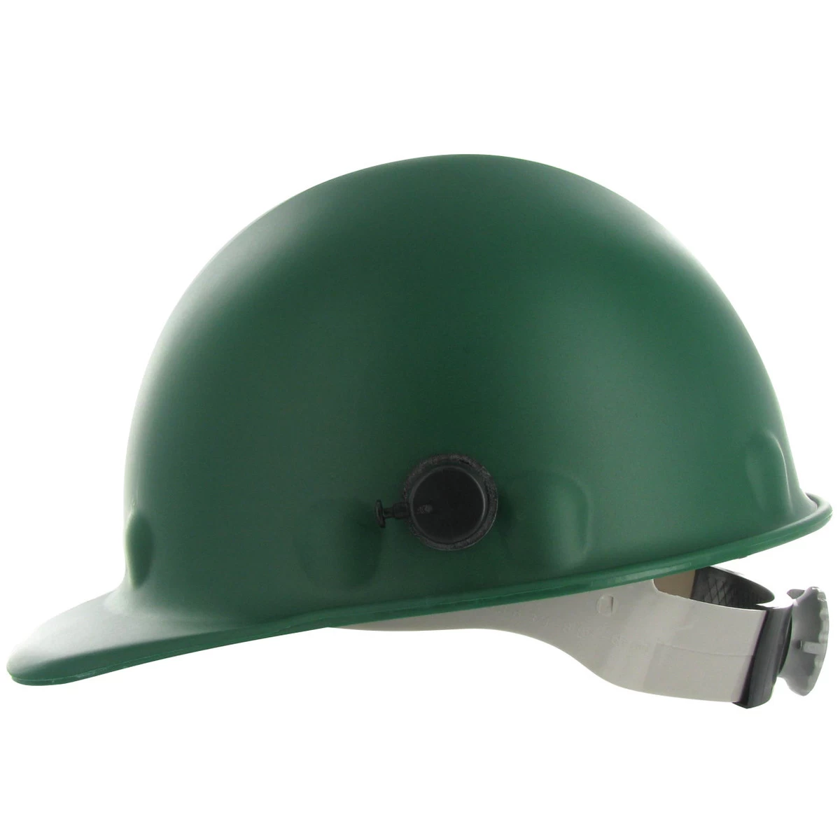 The Fibre Metal Roughneck Hi Heat Hard Hat with SuperEight® ratchet suspensions, these caps are the industry standard for heavy-duty protection. Made from injection-molded fiberglass, they’re built for strength, toughness, durability, and exceptional impact and crack resistance. Quick-Lok Blocks make mounting Fibre-Metal® face shields and other accessories quick and easy. Impact resistant at extreme temperatures of 370°F. Meets ANSI-Z89.1, Type 1, Class G.