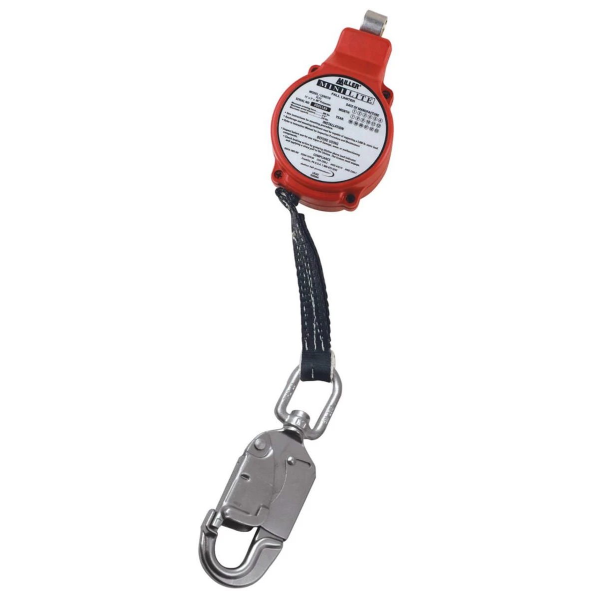 The MiniLite is an 11 ft. self-retracting web lanyard with a quick-activating braking system that limits free falls. In contrast to shock-absorbing lanyards, a Fall Limiter eliminates the need for extended fall distance clearance.