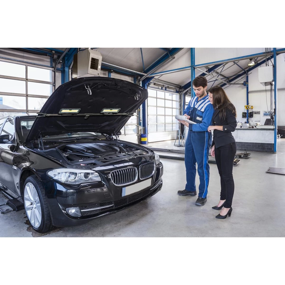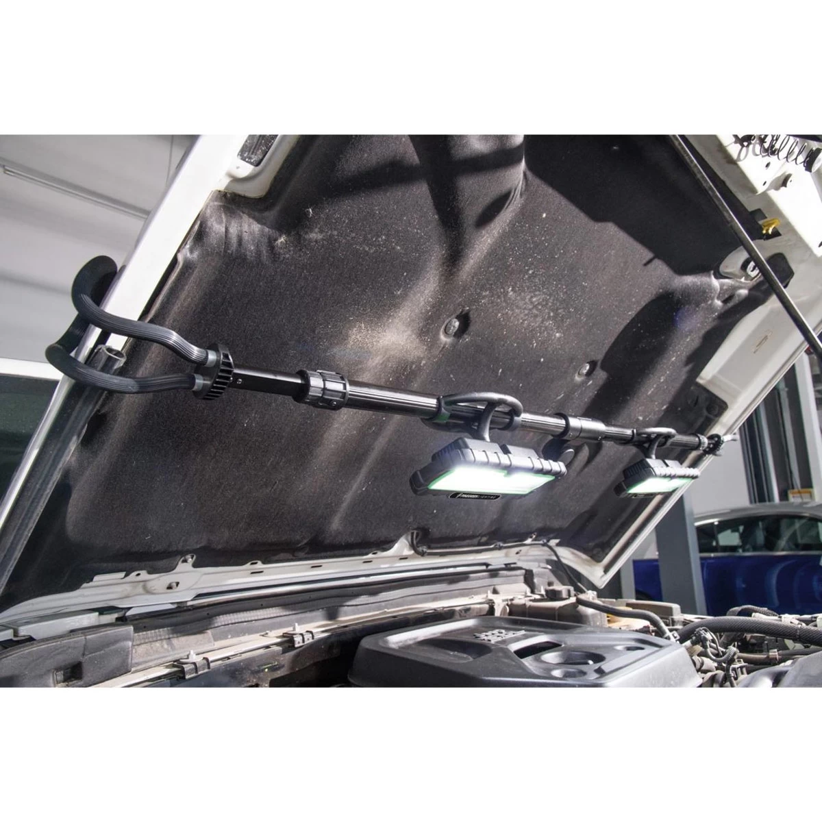 This LED Rechargeable Under-Hood work light is the ideal light for automotive repair work. Don’t just limit it to automotive repair as this portable light has many other applications around the home or garage. Includes 2 light heads and a foldable bar with to allow the light to be configured for multiple uses. Each light head rotates 180-degrees vertically as well as 360-degrees horizontally so you can direct light where you need it. In addition, each light has a magnetic base allowing them to be detached from the bar and used independently if desired.