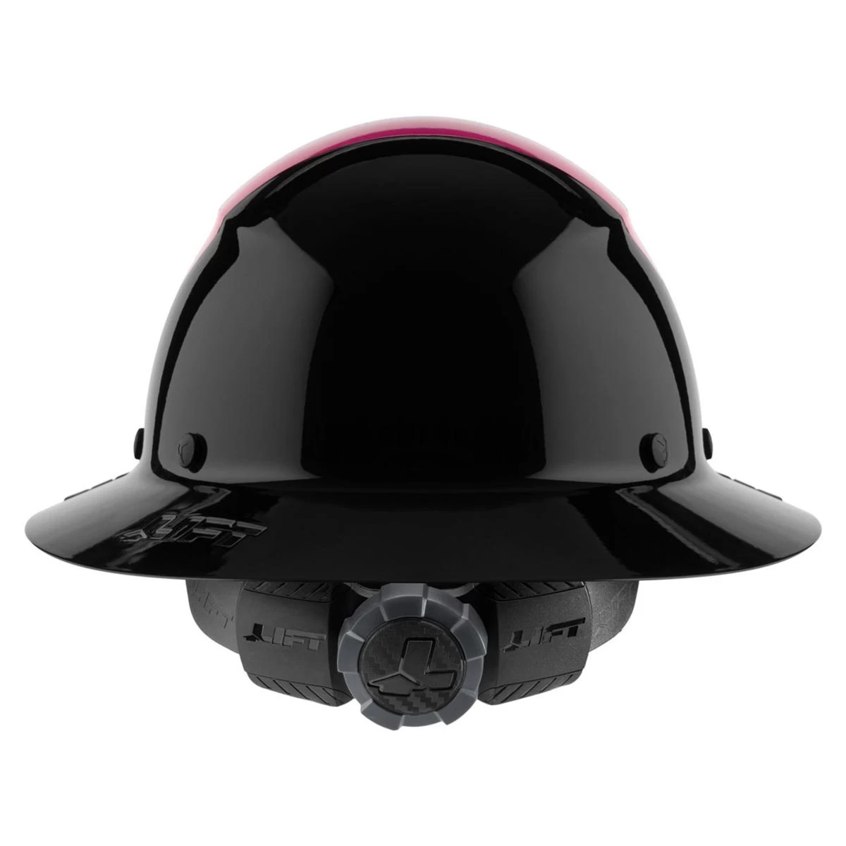 The DAX FIFTY/50 Hard Hat is a full brim, fiber reinforced resin hard hat offering a 6 point suspension system for superior comfort and impact protection. It features an innovative synthetic leather comfort dome and an over-sized ratcheting fitment dial that makes adjustment easy even while wearing gloves. Each Dax hard hat carbon fiber shell is hand laid giving it a unique, one of a kind appearance. The DAX FIFTY/50 Hard Hat hardhat Weighs in at an average 315g grams without suspension system. With suspension it weighs on an average of 460 grams.
