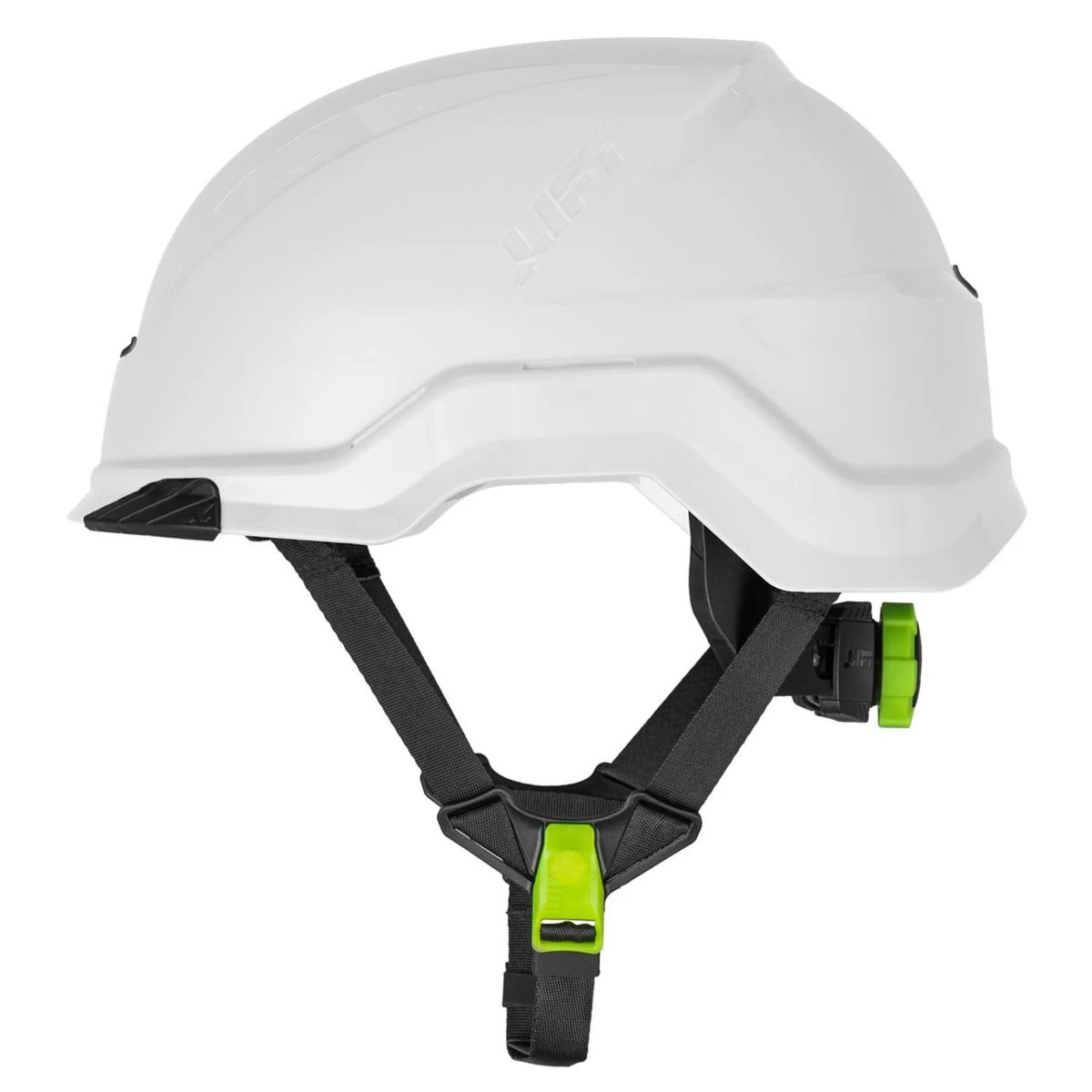 The LIFT RADIX Vented Safety Helmet is comfortable thanks to its four-point LUX Suspension system, which guarantees the helmet will fit securely on the head. The magnetic quick-lock, adjustable chinstrap makes it ideal for working at height and on the ground. The ventilated outer shell protects against impact hazards. With its potential for integrating an ARCLIGHT headlamp, LIFT hearing protection, and multiple accessories, it is an entirely modular helmet, thus meeting the specific needs of multiple industries. The LIFT RADIX Vented Safety Helmet weighs in at an average 495g grams with suspension.