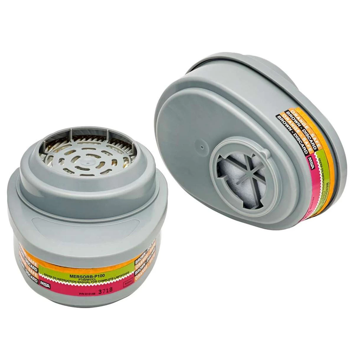 The MSA Advantage Mersorb P100 Replacement Cartridge is NIOSH approved to be effective against chlorine and mercury vapor and has a 99.97% filter efficiency level which is effective against all particulate aerosols. It is also effective against 0.3 micron DOP. Do not use in atmospheres containing less than 19.5% oxygen or in atmospheres immediately dangerous to life and health.