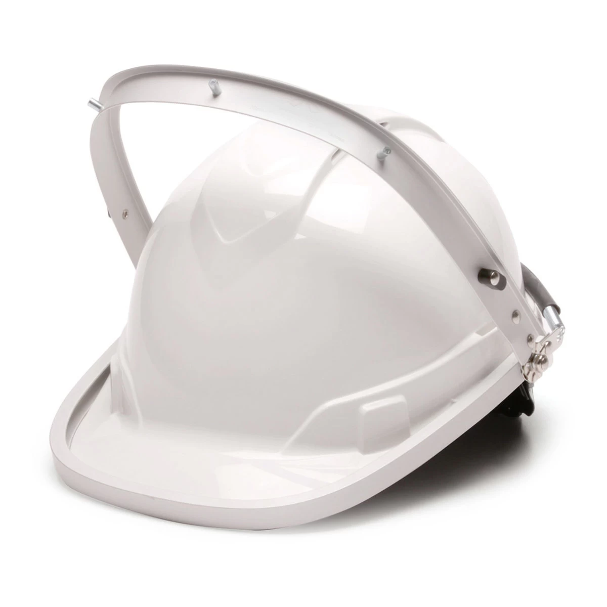 The Pyramex Deluxe Aluminum Cap Style Adapter – HHAAD is constructed from lightweight aluminum material. It fits most rounded cap style hard hats and most face shields – excluding model S1060. The outer frame features pegs to hold face shield intact and the inner frame attaches safely and securely to the cap style hard hat. The hinge joins the inner and outer frame. It is ANSI Z87.1 rated.
