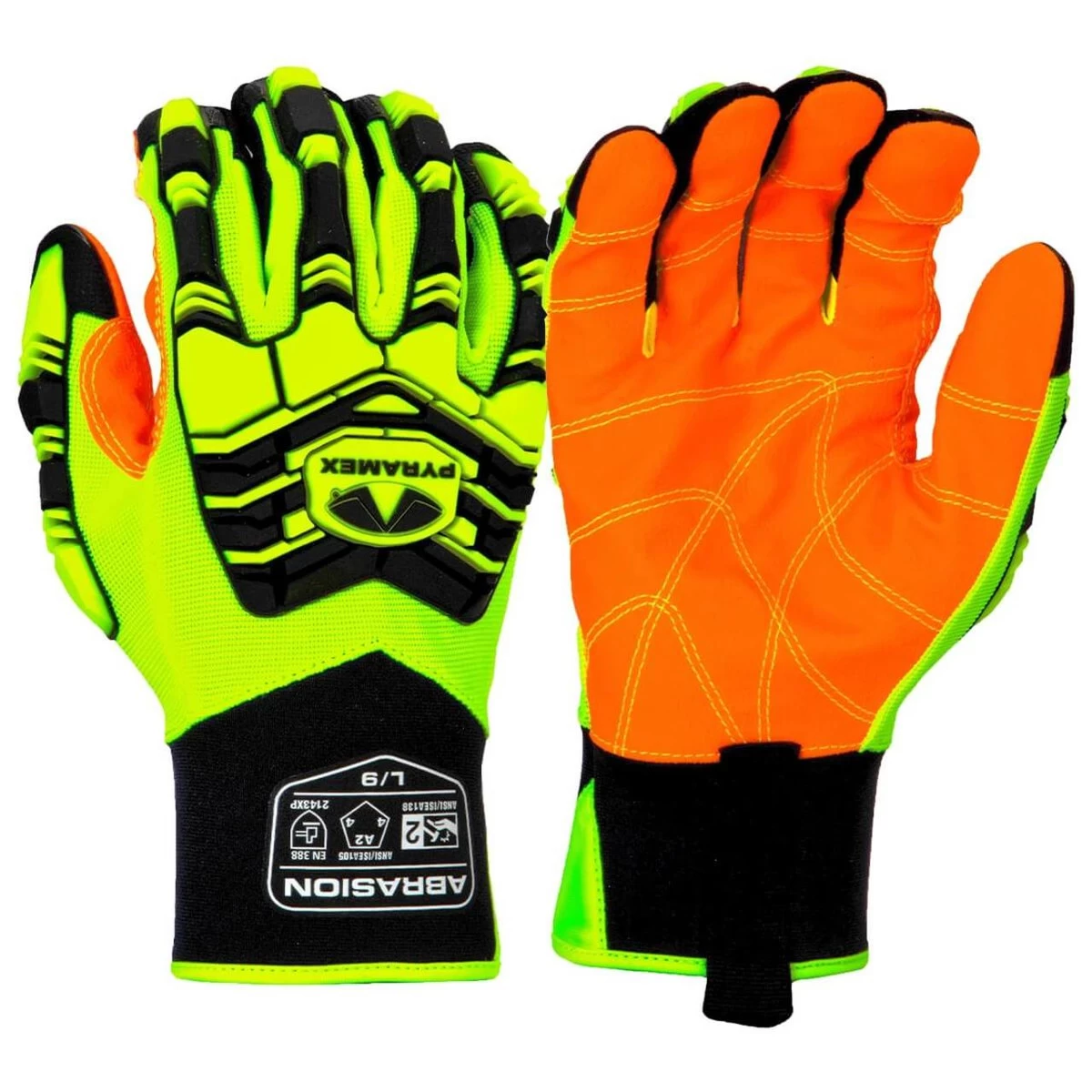 The Pyramex GL806HT Hi-Vis Impact Gloves are designed to provide maximum protection and comfort in high-impact work environments. The gloves feature a durable PVC palm that provides enhanced grip, while the TPR impact protection on the fingers and knuckles helps to reduce the risk of injury. The neoprene cuff and pull tab make it easy to put on and remove gloves, and the polyester and cotton liner adds extra comfort and durability. The gloves also feature a mesh stretch fabric back for breathability and comfort and a hi-vis back for enhanced visibility in low-light conditions.