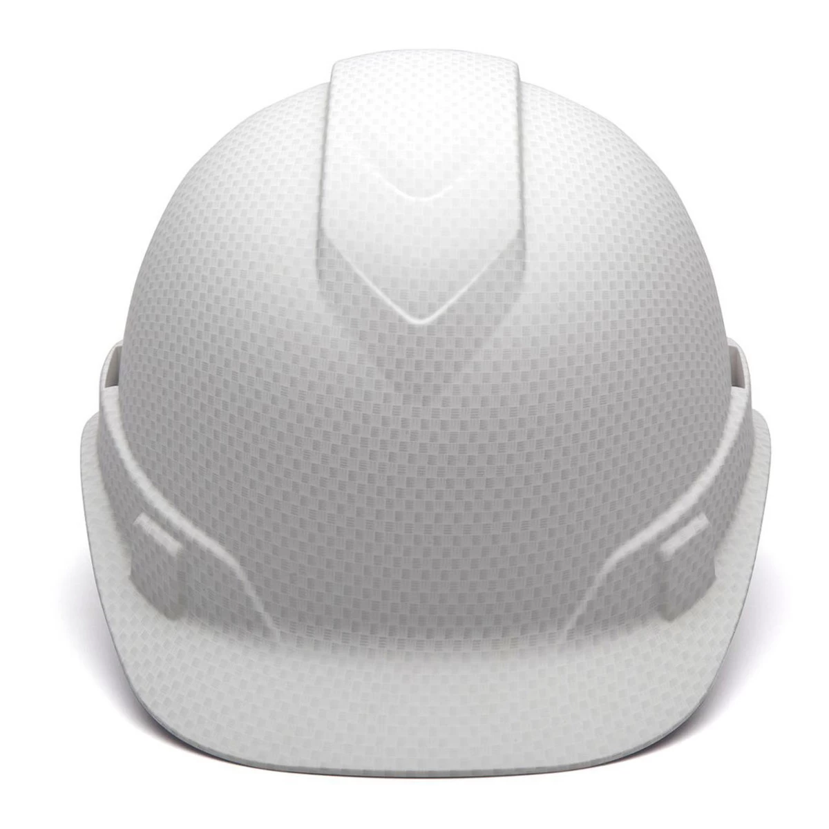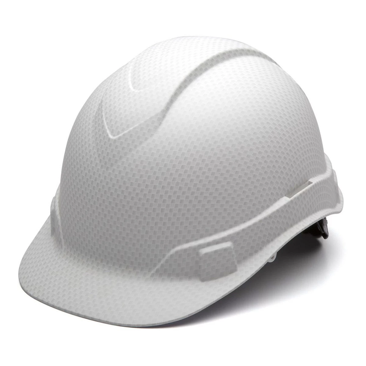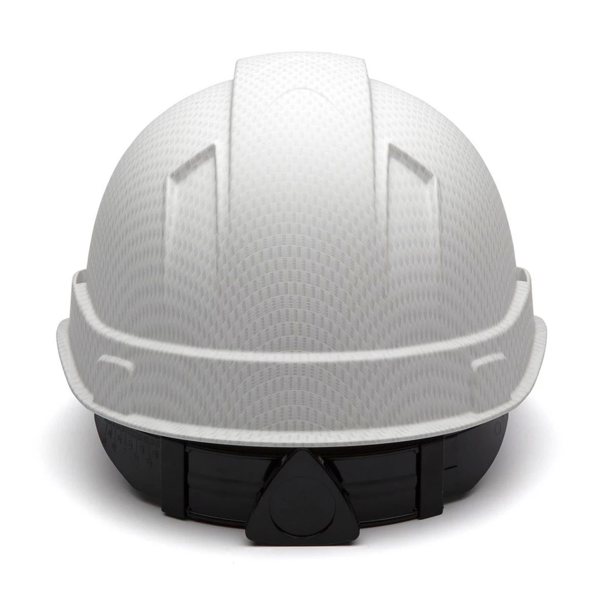 The Pyramex Ridgeline Matte White Graphite 4-Point Ratchet Hard Hat – HP44116 is made of strong, yet ultra lightweight ABS material for seemingly weightless protection. The low profile design offers a low center of gravity for better balance. There is a rear padded suspension that provides additional level of comfort on the wearers’ neck and the 4-point position harness points allow you to move the harness forward, backward, up, or down providing an optimal fit. The padded fabric, polyurethane sweatband provides comfort all day and the vented pressure pad keeps the straps in place providing an additional level of comfort! The easy to grasp triangle knob adjusts the suspension anywhere from 6-1/2″ to 8″ hat sizes. The swinging hinge points allow you to find the most comfortable position on the back of your head.