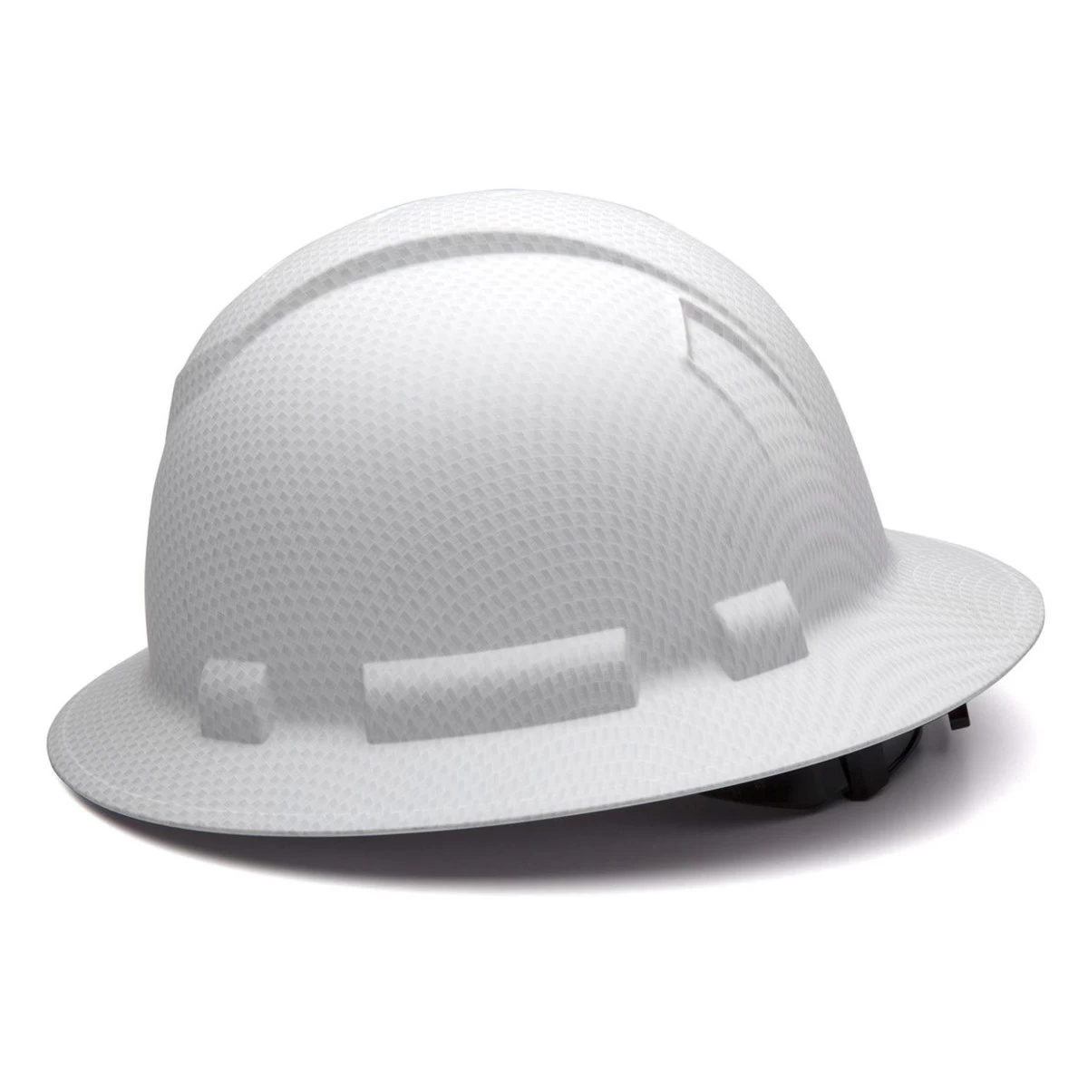 The Pyramex Ridgeline Matte White Graphite Full Brim 4-Point Ratchet Hard Hat – HP54116 features a shell constructed ABS material that is strong, yet ultra-lightweight for seemingly weightless protection. The ratchet suspension is easy to adjust and allows the wearer to modify the fit while wearing the hard hat. There is a soft brow pad for comfort and it is fully replaceable. Meets ANSI Z89.1-2014, Cert. Mod. CAN/CSA Z94.1-15, Type 1, Class E, G, and C.