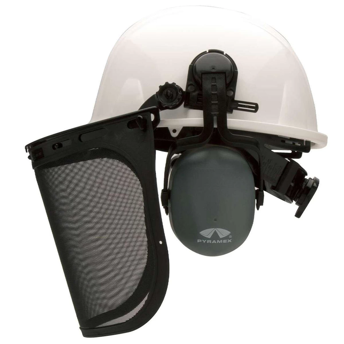 The Pyramex Forestry Kit FORKIT10SL, contains the essentials for forestry workers. Includes SL Series cap style hard hat, wire mesh faceshield (S1060), cap mounted earmuff (CM6010), and Ridgeline cap style adapter (HHABCMR).