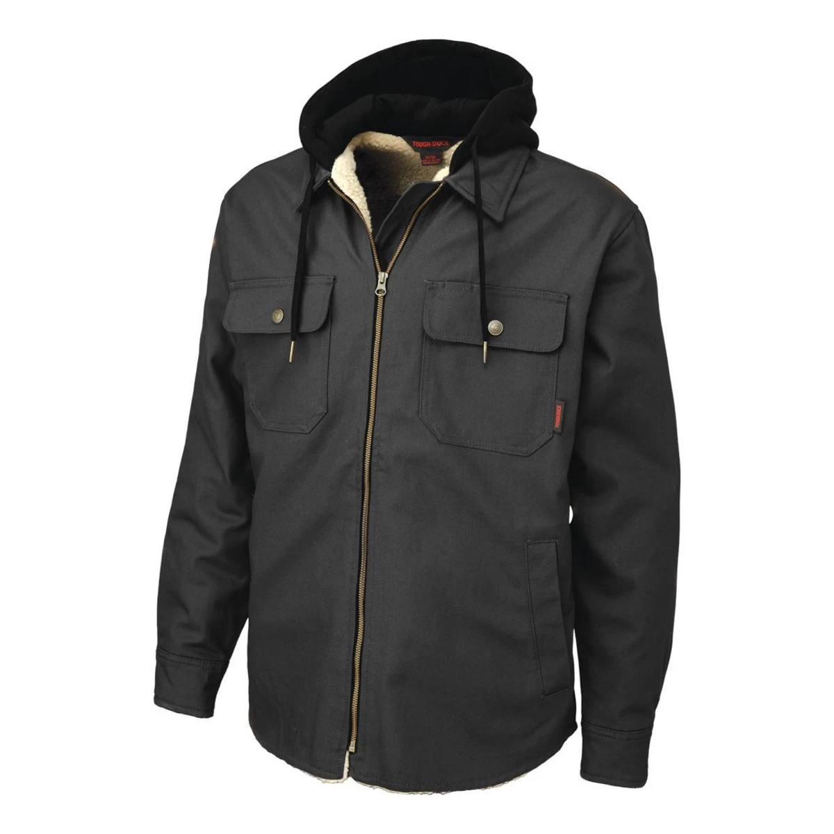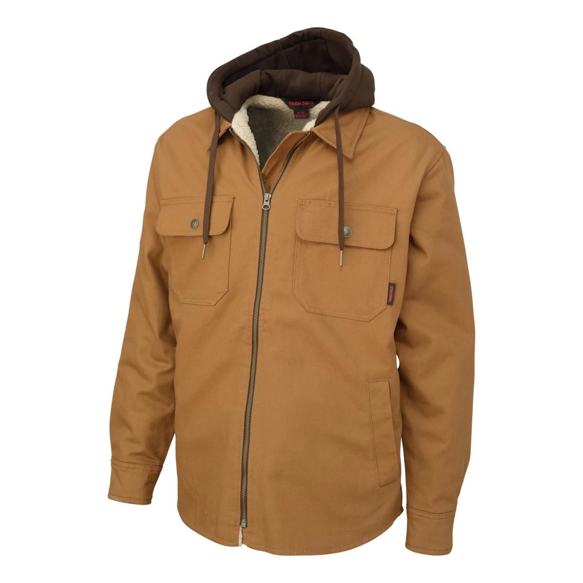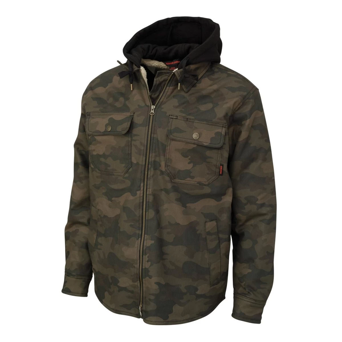 100% Cotton 10oz Premium Duck with durable water repellent finish, sherpa lined body with Quilted 5oz Polyester